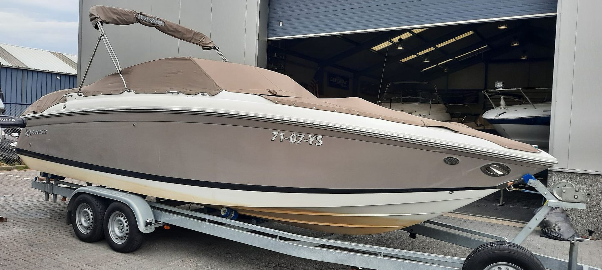 Bootkap reparatie voor deze speedboot van het merk Cobalt